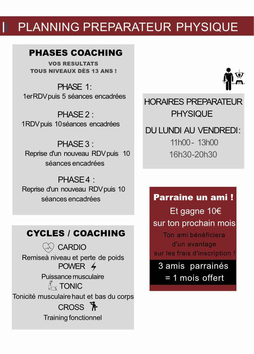 Oui. Dès l’inscription nous fixons un rdv entre vous et le préparateur physique pour travailler sur un cycle d’entraînement, selon votre niveau et votre objectif. Ensuite, vous serez autonome, en venant quand vous le souhaitez de 6H à 22H.Au bout de 10 séances, nous reprenons rdv et changeons de cycle d’entrainement.